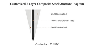 - 10Cr15MoV (VG10-grade) stainless steel core
